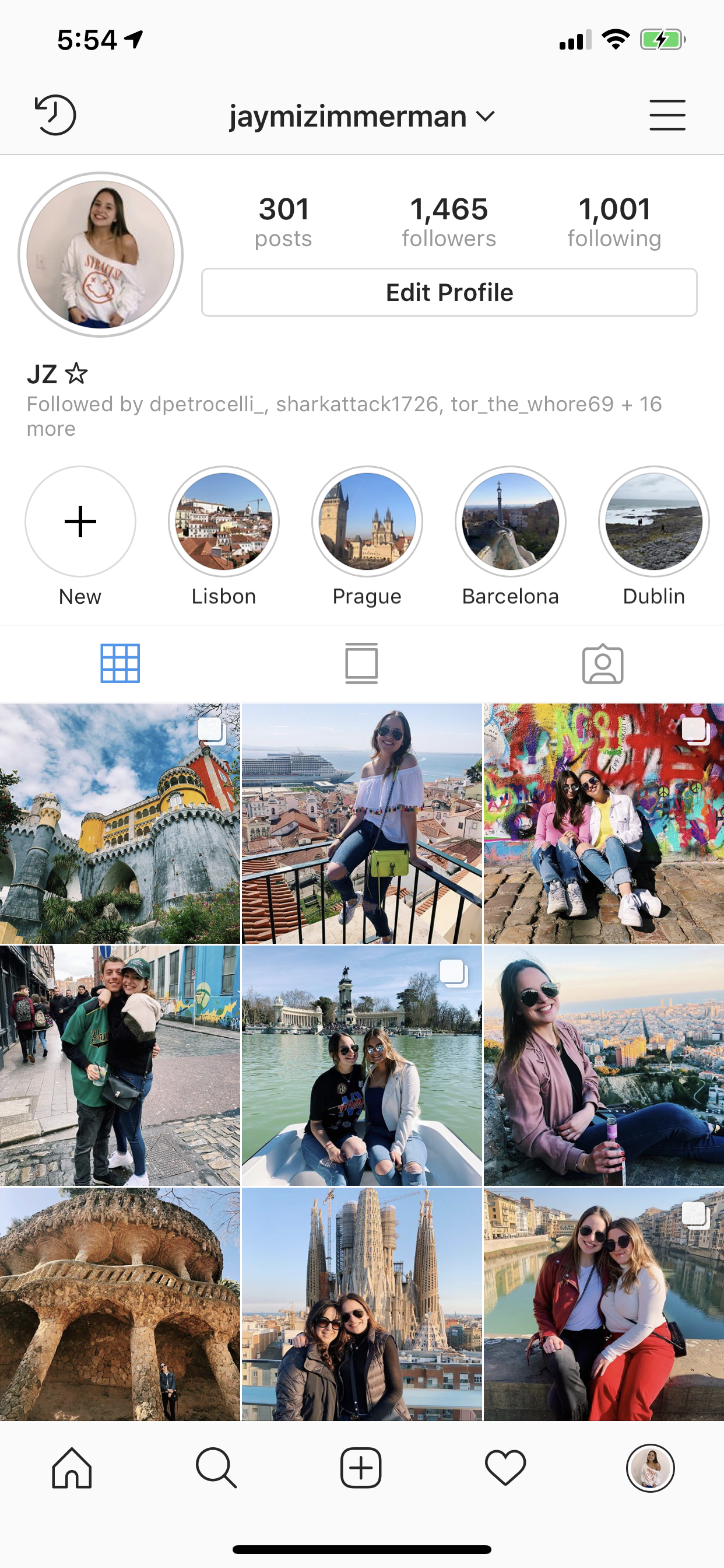 Keep in mind that what I just described was just pictures in Barcelona. I would say that my instagram while abroad has been taken up by pictures from places I have traveled. In all of the nine cities I went to, I posted either one or multiple pictures. For example, when I went to Lisbon I posted the first selfie I took there at the Sao Jorge castle. Then the next day in Sintra, Portugal I posted scenic pictures of the Pena Palace. When I went on my AICAP to Madrid through CEA I knew that we were going to be doing a lot of touristy things, but I had my heart set on an instagram rowing the boat in the Retiro Park. As I visited other places like the John Lennon wall in Prague, or went on the London Eye I posted pictures in those places as well, to show my followers and keep them updated on my life in each city. Before going to London, I went out and bought new striped pants to feel more “London.” I made sure to wear those pants on the day we went on the London Eye because I had an instagram in mind. It is almost comical to me that thoughts like those cross my mind, because it truly is not like me. Overall, my instagram feed represents highlights from places I went while abroad and the experiences I had.