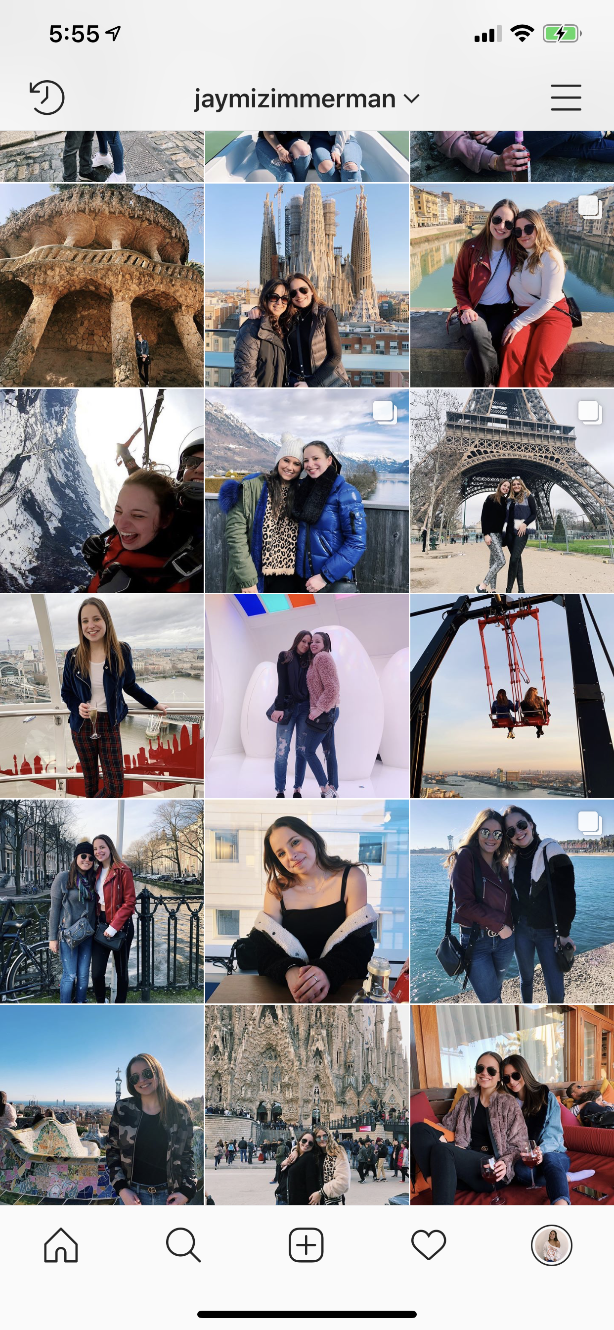 Starting in Barcelona, I knew I was going to take pictures and post from the most iconic sites. These sites and attractions being La Sagrada Familia, Park Guell, the wine tour I went on with my family, the beach, and many more. Looking back on my “instas” I posted from all of those places. Some were scenery, some were selfies, and some were scenic pictures. I feel that I did this because I figured it was what was expected of me. People I knew who came abroad to Barcelona did all of the same pictures and posts, that I followed in their footsteps. While I was not like my friends who went to these venues just for the instagram, I actually tried to step back and enjoy the places as well. I remember the day we went to Park Guell for the first time we all put on our most insta-worthy outfits. I made sure that the green jacket I was going to wear would match with the benches and other scenic things. I also recall my friends specifically stating “we are not leaving the benches until we all have an instagram.” I think this goes to show the effort, time, and energy it takes to post an instagram while abroad, but every time I think of this I ask myself why? Why do we feel the need to do this? In reality people at home are just scrolling and liking instagrams without even taking a second glance at them, and even with that knowledge in my head I continue to post the most insta-worthy selfies, outfits, and pictures that I have.